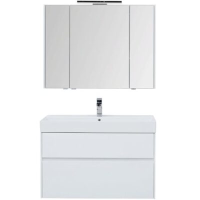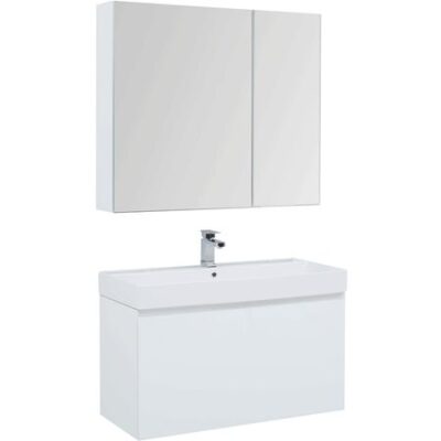 Комплект мебели для ванной Aquanet Модена 100 199303. Цвет: белый глянец. Элегантная и комфортная мебель прекрасно дополнит современный интерьер ванной комнаты.