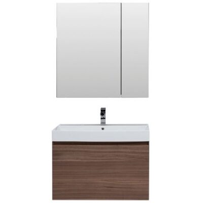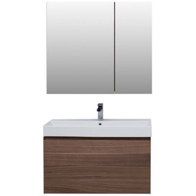 Комплект мебели для ванной Aquanet Нью-Йорк 85 211661. Цвет: шпон орех. Элегантная и комфортная мебель прекрасно дополнит современный интерьер ванной комнаты.