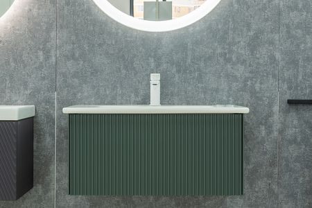 Тумба под раковину WellWant Aura 80 WWM000800G подвесная. Запатентованная система Samet Push-Open Soft Close позволяет совмещать бесшумное закрывание и