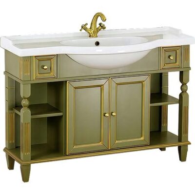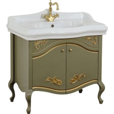 Тумба под раковину Migliore Impero 90 25984. Характеристики: Цвет: oliva (оливковый). Материал корпуса: массив бука, МДФ. Покрытие фасада: эмаль оливковая с патиной.