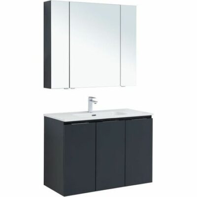 Комплект мебели для ванной Aquanet Алвита New 100 273986 подвесной. Характеристики: Тумба под раковину: Цвет: антрацит. Материал фасада и корпуса: влагостойкий ЛДСП.