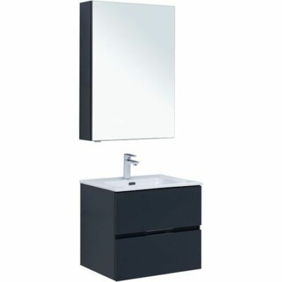 Комплект мебели для ванной Aquanet Алвита New 60 274219 подвесной. Характеристики: Тумба под раковину: Цвет: антрацит. Материал фасада и корпуса: влагостойкий ЛДСП.