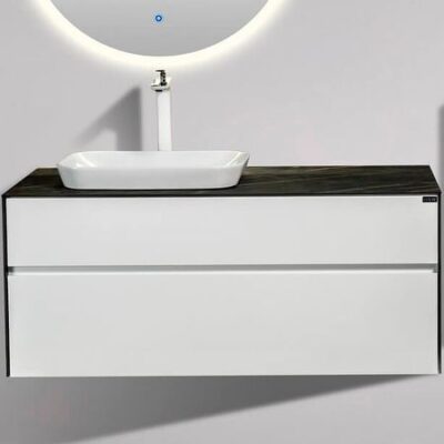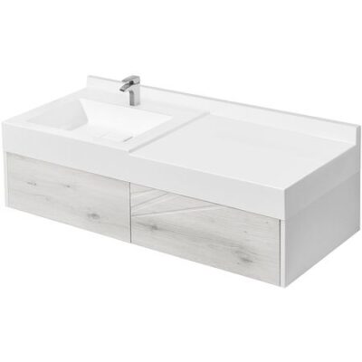 Тумба под раковину Акватон Сакура 120 1A219701SKW80 подвесная. Характеристики: Цвет: ольха наварра, белый глянец. Материал: ВЛДСП, МДФ. Габариты тумбы