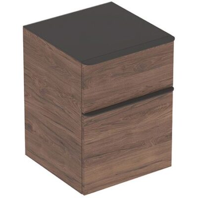 Тумба Geberit Smyle Square 45 500.357.JR.1 с двумя выдвижными ящиками. Характеристики. Цвет: пекан. Корпус изготовлен из влагостойкого ДСП высокого класса P3.