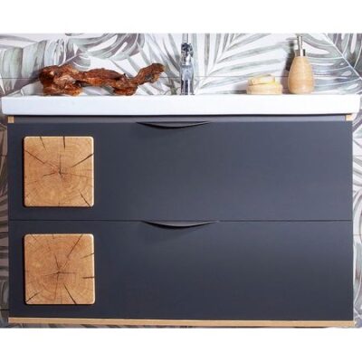 Тумба под раковину Бриклаер Форест 100 4627125414664 подвесная. Характеристики: Цвет: основной — антрацит, вставки — дуб золотой.