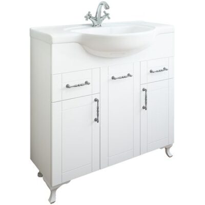 Тумба под раковину Sanflor Глория 85 С000005710 напольная. Характеристики: Цвет: белый матовый. Материал корпуса: влагостойкая ЛДСП. Материал фасада: МДФ.