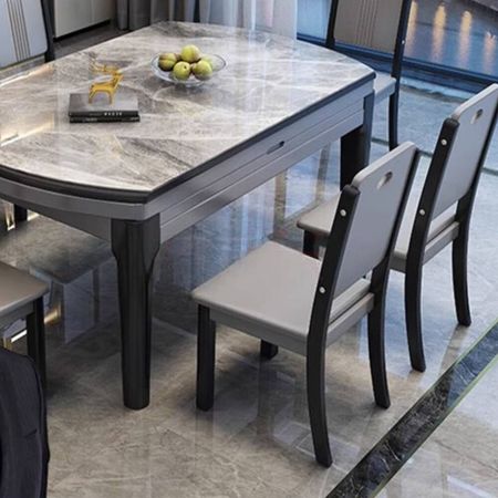 Главная » Мебель Комбинация Стол обеденный + 4 стула Zhong Wei, 1,35 м, серый Просмотров 5 Комплект мебели для столовой, кухни или ресторана — стол обеденный с закругленными краями из массива дерева и мраморной столешницей и 4 стула. Zhong Wei