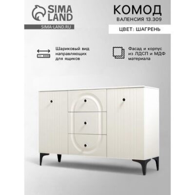 Комод для хранения «Валенсия»: классический стиль и функциональность для вашего интерьераПрактичное и элегантное решение для организации пространства в вашем доме. С его помощью вы сможете создать уютную и функциональную зону для хранения вещей, сохраняя при этом стиль и комфорт.Основные преимущества:Функциональность: Три выдвижных ящика обеспечивают достаточно места для хранения вещей, поддерживая порядок в комнате.Классический дизайн: Белый цвет фасада создает светлый и воздушный вид, идеально вписываясь в классические интерьеры.Удобство использования: Шариковые направляющие обеспечивают плавное и легкое выдвижение ящиков.Универсальность: Компактные размеры и классический дизайн делают комод подходящим для различных помещений — от спальни до гостиной.Особенности:Современный дизайн с вертикальными рельефными линиями на фасадах.3 просторных ящика для хранения мелких предметов.2 дверцы для скрытого хранения более крупных вещей.Черные металлические ножки-опоры придают конструкции устойчивость и стиль.Оригинальные черные ручки в виде точек добавляют минималистичный шарм.Для кого подойдет?Любители классического стиля: Те, кто ценит элегантные и лаконичные решения для интерьера.Обладатели небольших помещений: Компактные размеры делают комод идеальным выбором для маленьких комнат.Ценители порядка: Те, кто хочет организовать пространство для хранения вещей, сохраняя при этом стиль и комфорт.Семьи с детьми: Просторные ящики идеально подходят для хранения детских вещей или игрушек.Как использовать?Хранение вещей: Три ящика обеспечивают достаточно места для организации одежды, документов или аксессуаров.Декор интерьера: Светлый цвет и классический дизайн добавят легкости и свежести в вашу комнату.Организация пространства: Комод можно использовать в спальне, гостиной или прихожей для хранения различных вещейУниверсальность и стиль:Благодаря своему универсальному дизайну, этот комод органично впишется в любую комнату. Станет отличным дополнением к гостиной, спальне или прихожей, помогая поддерживать порядок и создавая гармоничную атмосферу.