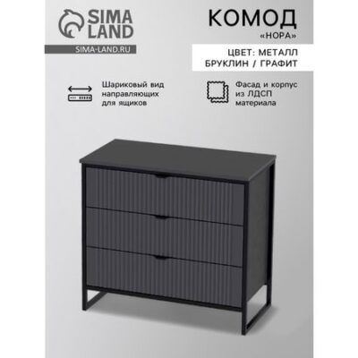 Комод «Нора»: современный стиль и функциональность для вашего интерьераПрактичное и элегантное решение для организации пространства в вашем доме. С его помощью вы сможете создать уютную и функциональную зону для хранения вещей, сохраняя при этом стиль и комфорт.Основные преимущества:Функциональность: Три выдвижных ящика обеспечивают достаточно места для хранения вещей, сохраняя порядок в комнате.Современный дизайн: Комод имеет лаконичный и современный дизайн с вертикальными рельефными линиями на фасадах ящиков, что придает ему текстуру и глубину.Удобство использования: Шариковые направляющие обеспечивают плавное и легкое выдвижение ящиков.Универсальность: Компактные размеры и современный дизайн делают комод подходящим для различных помещений — от спальни до гостиной.Особенности:Шариковые направляющие: Обеспечивают плавное и легкое выдвижение ящиков, что делает использование максимально удобным.Цвет (графит, металл Бруклин): Современное сочетание цветов подчеркивает стильный дизайн комода, добавляя элегантности и современности в интерьер.Напольная установка: Обеспечивает стабильность и надежность конструкции.Стиль современный: Лаконичный дизайн идеально дополнит интерьеры, где важна простота и функциональность.Металлические элементы: Черные металлические ножки добавляют прочности и контраста, подчеркивая современный стиль комода.Для кого подойдет?Любители современного стиля: Те, кто ценит лаконичный дизайн и современные решения для интерьера.Обладатели небольших помещений: Компактные размеры делают комод идеальным выбором для маленьких комнат.Ценители порядка: Те, кто хочет организовать пространство для хранения вещей, сохраняя при этом стиль и комфорт.Семьи с детьми: Просторные ящики идеально подходят для хранения детских вещей или игрушек.Как использовать?Хранение вещей: Три ящика обеспечивают достаточно места для организации одежды, документов или аксессуаров.Декор интерьера: Стильный дизайн и современные цвета добавят уюта в вашу комнату.Организация пространства: Комод можно использовать в спальне, гостиной или прихожей для хранения различных вещей.