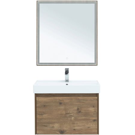 Комплект мебели для ванной Aquanet Nova Lite 75 254217. Цвет: дуб рустикальный. Элегантная и комфортная мебель прекрасно дополнит интерьер вашей ванной комнаты. Тумба: Материал корпуса и фасада: влагостойкий ЛДСП. Покрытие: ламинат/фактура. Монтаж: подвесной. Система хранения: большой выдвижной ящик и внутренний ящик для мелочей. Фурнитура: направляющие немецкого производства Hettich Quadro с доводчиками. Декоративная интегрированная ручка. Размеры тумбы (ШхГхВ): 72,4×44,2×56,5 см. Зеркало: Габариты (ШхГхВ): 75×3,2×80 см. В комплекте поставки: тумба, раковина (фаянс), зеркало.