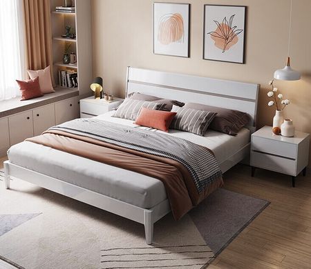 Главная » Мебель Кровать двухспальная + прикроватная тумбочка Quanu 126101B, 1,5 м, белый Просмотров 5 Кровать двухспальная шириной 1,5 метра из массива дерева и прикроватная тумбочка с двумя выдвижными ящиками. Quanu