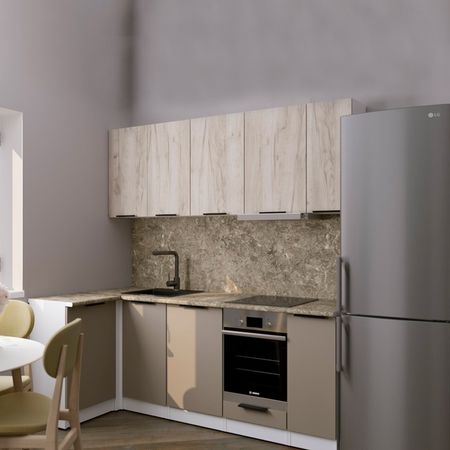 Кухонный гарнитур Альба прайм 400, 1100х2000 мм, дуб браун/мокко, аламбра темная