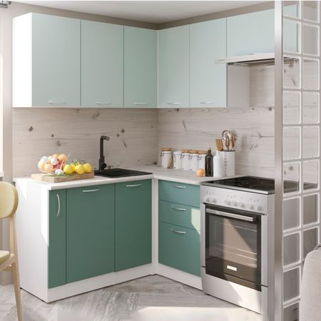 Кухонный гарнитур Асая мега прайм 1600х1700 мм, сумерки/бензин, сосна