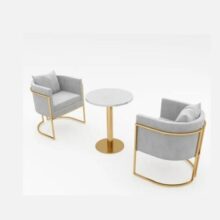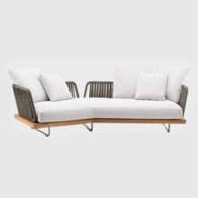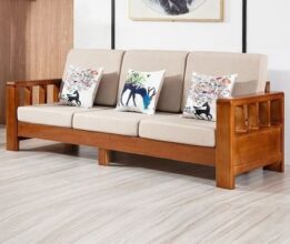 Диван прямой двухместный для небольшой гостиной с обивкой из ткани.