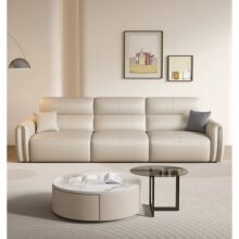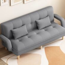 Диван-кровать для небольшой гостиной с обивкой из искусственной кожи.