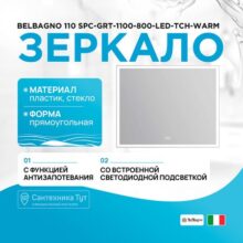 Подвесное зеркало BelBagno 110 SPC-GRT-1100-800-LED-TCH-WARM