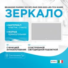 Подвесное зеркало BelBagno Marino 100 SPC-MAR-1000-600-LED-TCH-WARM