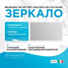 Подвесное зеркало 140 SPC-GRT-1400-800-LED-TCH-WARM