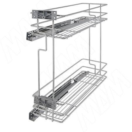Вид товара: многоуровневые корзины, установка: нижний ярус, ширина фасада: 200 мм, цвет товара: хром, серия: PARTNER, количество уровней: 2, выдвижение направляющих: 90%, тип закрывания: с плавным закрыванием, крепление направляющих: левое