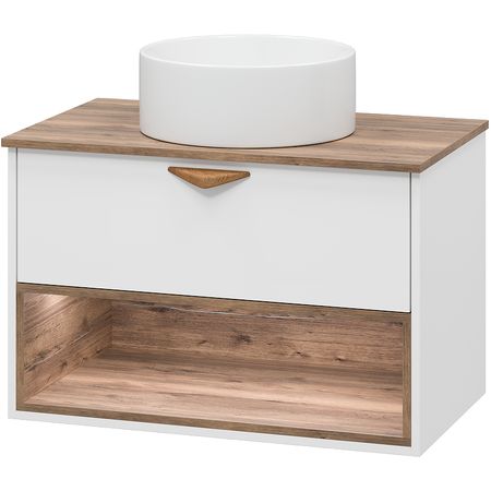 Тумба под раковину Brevita Bergen 80 BER-07080-19-01-1Я подвесная Белая матовая Дуб Галифакс олово