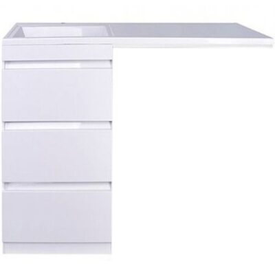 Тумба коллекции Даллас выполнена в современном стиле с преобладанием прямых строгих линий в дизайне. Она сочетает в себе функциональность и обеспечит удобное хранение ванных принадлежностей. Для размещения ванных аксессуаров в тумбе предусмотрено два выдвижных ящика. Особенностью модели является возможность установки рядом с тумбой стиральной машины под общую раковину. Мебель отлично впишется в интерьер ванной комнаты в современном дизайне.