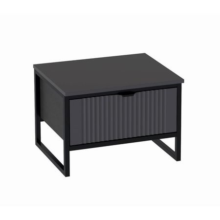 Тумба с ящиком «Нора», 545х425х380, Металл Бруклин / Графи прекрасно совместит в себе функции удобного комода и придиванного столика, на который можно поставить чашку с напитком, отложить книгу, рукоделие или пульт от телевизора. Декоративная продольная фрезеровка на МДФ фасаде цвета «Графит» и опоры на металлокаркасе цвета «Черная эмаль» соответствуют модным тенденциям этого года в ведущих зарубежных коллекциях. Дизайн коллекции гармонирует со стилем минимализм и лофт. Корпус изделий выполнен из качественного ЛДСП 16 мм цвета «Металл Бруклин», фасады из МДФ16 мм цвета «Графит». Толщина металлических опор — 20 мм.Дополнительно: Ширина: 545 мм. Высота: 380 мм. Глубина: 425 мм. Шариковые полного выдвижения.