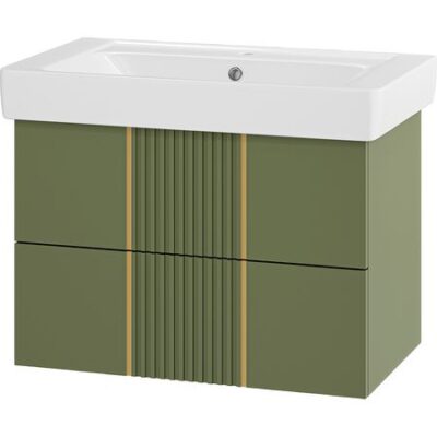 Тумба с раковиной Brevita Vega 80 УТ000022676 подвесная Зеленая матовая Золото