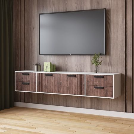 Тумба ТВ Парус-12, 2202х400х425, Белый/Палермо Бруно