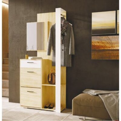 Вешалка «Росс», 900х350х2000, дуб сонома / белый сочетание современного стиля и классических элементов делает эту композицию уникальной и привлекательной. Вешалка «Росс» включает штангу для верхней одежды, выдвижной ящик, тумбы с откидными дверцами, полочку и зеркало.Дополнительно: Ширина: 900 мм. Высота: 2000 мм. Глубина: 350 мм. Цвет: Дуб сонома, Белый Роликовые направляющие.