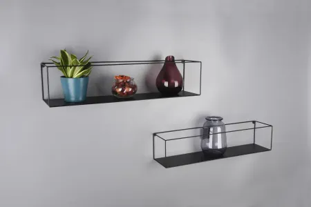 ТИНКА стильно украсит стены гостиной или прихожей. Практичный набор из 2 штук, изготовленный из прочного металла, предлагает место для хранения различных аксессуаров. Черный цвет в индустриальном стиле придает структуру пустым стенам и визуально обле…