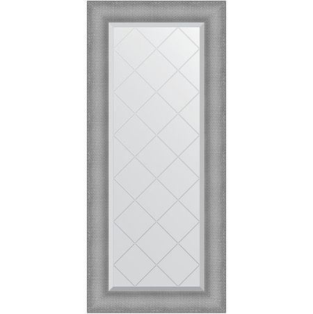 Зеркало Evoform Exclusive-G 127х57 BY 4542 с гравировкой в багетной раме — Серебряная кольчуга 88 мм — изготавливается из высококачественного полотна AGC Mirox MNGE (New Generation). Экологически чистое зеркальное полотно нового поколения. Можно использовать в помещениях с повышенной влажностью.