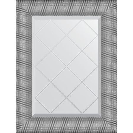 Зеркало Evoform Exclusive-G 74х57 BY 4541 с гравировкой в багетной раме — Серебряная кольчуга 88 мм — изготавливается из высококачественного полотна AGC Mirox MNGE (New Generation). Экологически чистое зеркальное полотно нового поколения. Можно использовать в помещениях с повышенной влажностью.