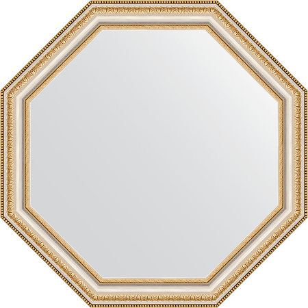 Зеркало Evoform Octagon 62х62 BY 3710 в багетной раме Золотые бусы на серебре 60 мм со шлифованной кромкой — изготавливается из высококачественного полотна AGC Mirox MNGE (New Generation). Экологически чистое зеркальное полотно нового поколения. Можно использовать в помещениях с повышенной влажностью.