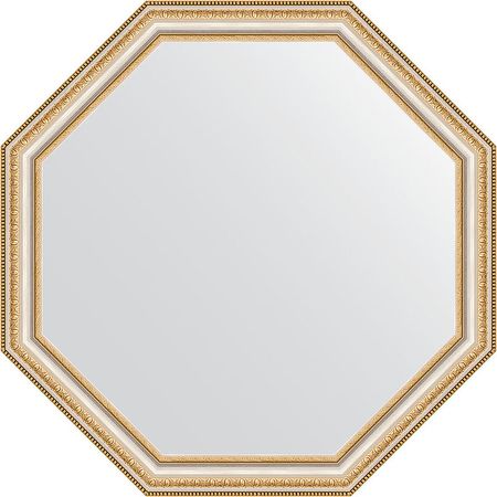 Зеркало Evoform Octagon 72х72 BY 3711 в багетной раме Золотые бусы на серебре 60 мм со шлифованной кромкой — изготавливается из высококачественного полотна AGC Mirox MNGE (New Generation). Экологически чистое зеркальное полотно нового поколения. Можно использовать в помещениях с повышенной влажностью.