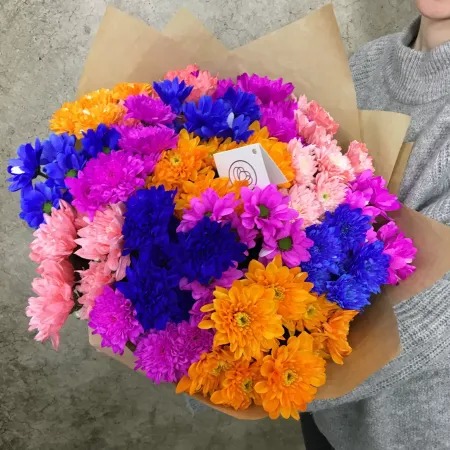 Главная » Подарки,сувениры,цветы 15 крашеных одноголовых хризантем микс в ярких тонах Просмотров 13 Большой выбор свежих цветов в ассортименте. Доставим круглосуточно. Семицветик