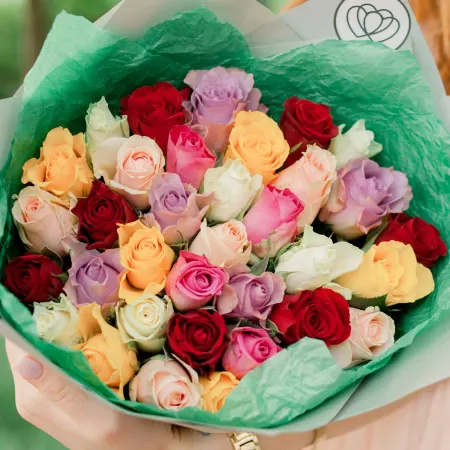 Главная » Подарки,сувениры,цветы 35 роз микс (Кения) 40 см Просмотров 13 Стойкость до 7 дней. Прямые поставки из Кении. Упаковка не входит в стоимость. Семицветик