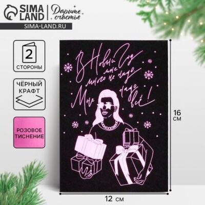 Открытка с новым годом, на черном крафте «Надо все», 12×16 см Дарите Счастье