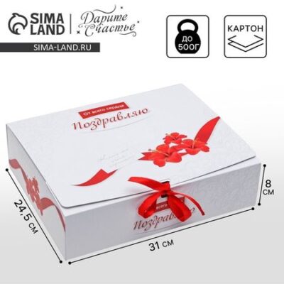 Коробка подарочная, упаковка, «Поздравляю», 31 х 24.5 х 8 см Дарите Счастье