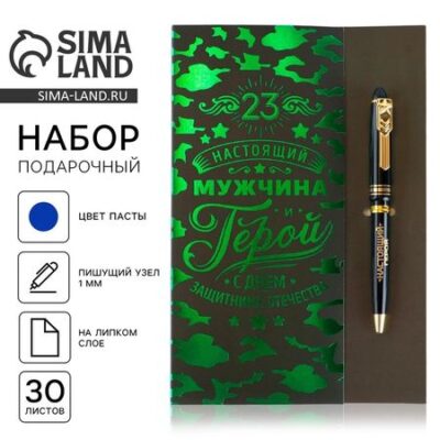 Подарочный набор, ручка пластик с фигурным клипом и стикеры «23 февраля» ArtFox