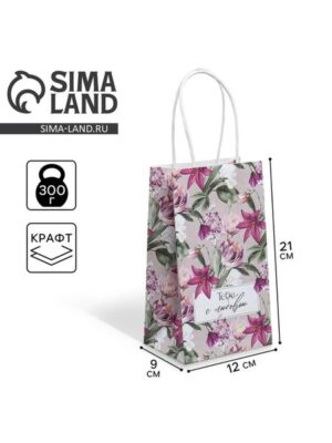 Пакет подарочный крафтовый, упаковка, «Тебе с любовью», 12 х 21 х 9 см Доступные Радости