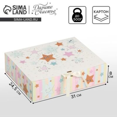 Коробка подарочная, упаковка, «Счастье», 31 х 24.5 х 8 см, БЕЗ ЛЕНТЫ Дарите Счастье