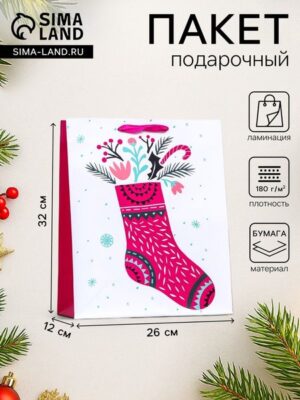 Стильный новогодний пакет с ламинацией используют как упаковку для подарка. Благодаря своему оригинальному дизайну и привлекательному внешнему виду он