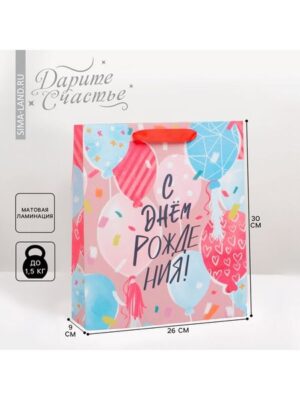Пакет подарочный ламинированный, упаковка, «Счастье», M 25.5 х 30 х 9 см Дарите Счастье