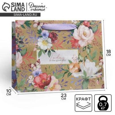 Пакет подарочный крафтовый, упаковка, Today, 23 х 18 х 10 см Дарите Счастье