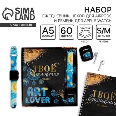 Подарочный набор с ежедневником, ремнём для часов и чехлом для наушников пойдет деловым людям, которые желают всегда оставаться на связи и держать всё под контролем.