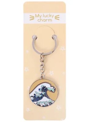 На стильном брелоке изображена гравюра японского художника «Большая волна». Это знаменитое произведение искусства ассоциируется с мощью океанских волн