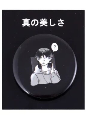 Значок круглый Аниме Парень с наушниками (Сёнэн) (черный) (металл) (38мм)
