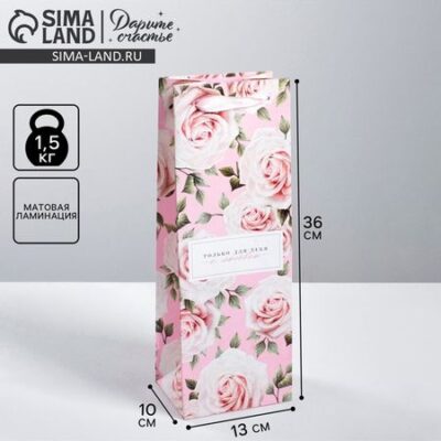 Пакет подарочный под бутылку, упаковка, «Только для тебя с любовью », 35 х 13 х 10 см Дарите Счастье