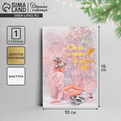 Открытка с новым годом на акварельном картоне «Тепла и уюта», тиснение, 10×15 см Дарите Счастье