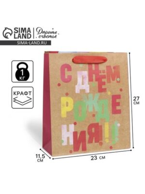 Пакет подарочный крафтовый, упаковка, «С ДР», ML 23 х 27 х 11.5 см Дарите Счастье